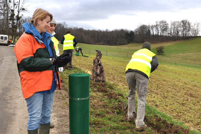 Après avoir creusé des rigoles, planté des pieux, ils ont déroulé une barrière temporaire de protection sur plus de 200 mètres. Grâce à ce matériel léger facile à installer et à enlever, les batraciens se heurtent à la barrière qu’ils sont obligés de longer et empruntent une buse pour traverser la route.