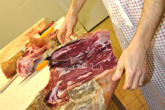 Toute sa charcuterie est fabriquée à partir de ce porc lourd du pays issu des meilleurs animaux sélectionnés après une croissance lente et élevés par les producteurs du département de l'Ariège.