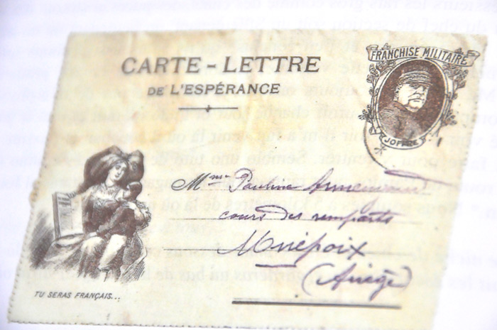 En effet, Michel Rivière, originaire de Mirepoix, installé depuis de nombreuses années à Mazamet a trouvé dans le grenier de la maison familiale des lettres de son grand père Maurice, menuisier de son état, incorporé à Foix au 259ème Régiment de réserve le 5 aout 1914.