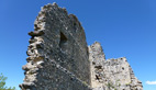 L’ensemble de la forteresse épousait la crête. Au nord une enceinte protégeait l’escarpement. Le sud composé d’une falaise abrupte ne fut pas fortifié. Vers le couchant on distingue encore la base d’un large bâtiment aux larges murs, 80cm, épaisseur généralement utilisée pour les murailles.