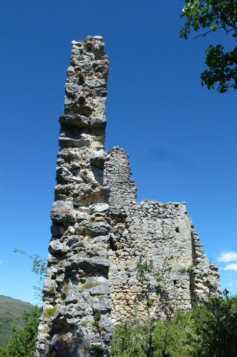 Chaque soir, les ruines du château de Calamès se découpent sur le fond du ciel. Pierres parmi les pierres, elles ne font qu’un avec la montagne.