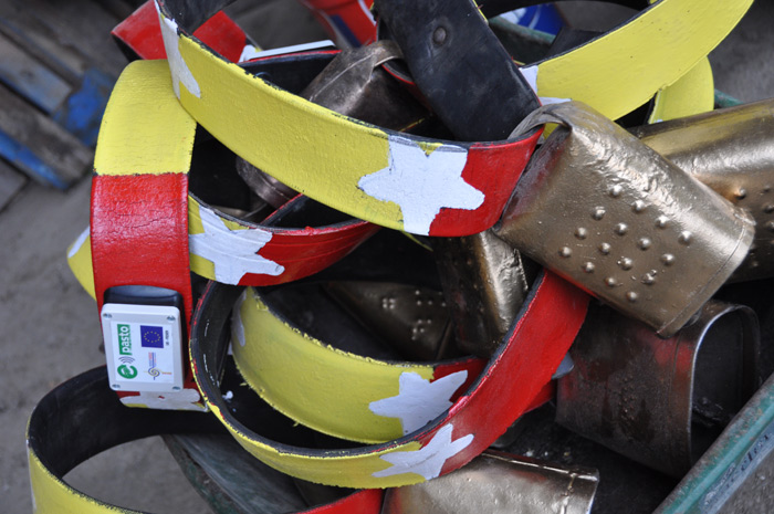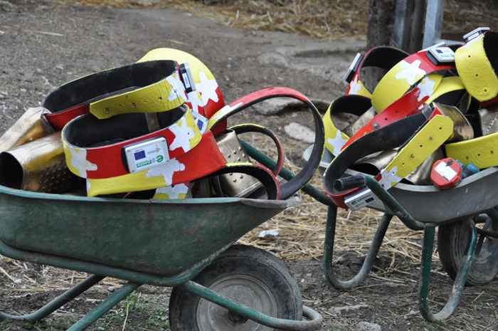 A la veille du départ en transhumance sur les estives du Consulat de Foix la famille Lagarde équipe son troupeau de bovins de curieux petits boîtiers fixés sur les sonnailles.