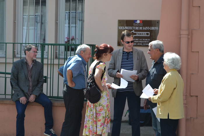 Un entretien de plus d'une heure au cours duquel Michel Larive, membre de la coordination régionale du Parti de Gauche et Vivianne Baudry du Parti communiste français, en tête de ce petit cortège ont délivré au sous-préfet une lettre qu'ils espèrent bien voir ré-adressée au Président de la République et à son premier ministre.