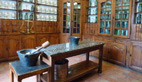 Les placards vitrés des angles, les nombreuses étagères et les 50 tiroirs ornés de petits anneaux torsadés en cuivre, plongent le visiteur au cœur d’un autre temps. Cette époque correspond au siècle des Lumières, quand la science rejoignait la religion pour répondre aux interrogations des grandes énigmes de la vie, que Parmentier, pharmacien militaire, luttait contre la famine grâce à la culture de la pomme-de-terre, que James Watt et Alessandro Volta œuvraient pour une future révolution industrielle.