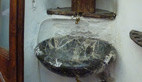 Une fontaine installée dans l’angle de la pièce permettait de laver les mains autant que les instruments souillés. Une trousse de chirurgien renferme des scalpels en acier et à manches d’ébène. Elle appartenait très certainement au médecin d’un bataillon de volontaires nationaux en garnison à Saint-Lizier à la fin du XVIIIème siècle.