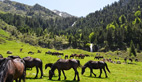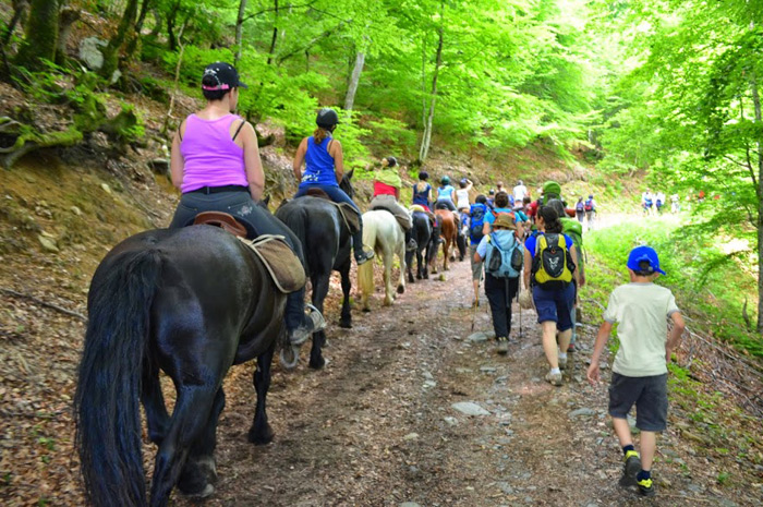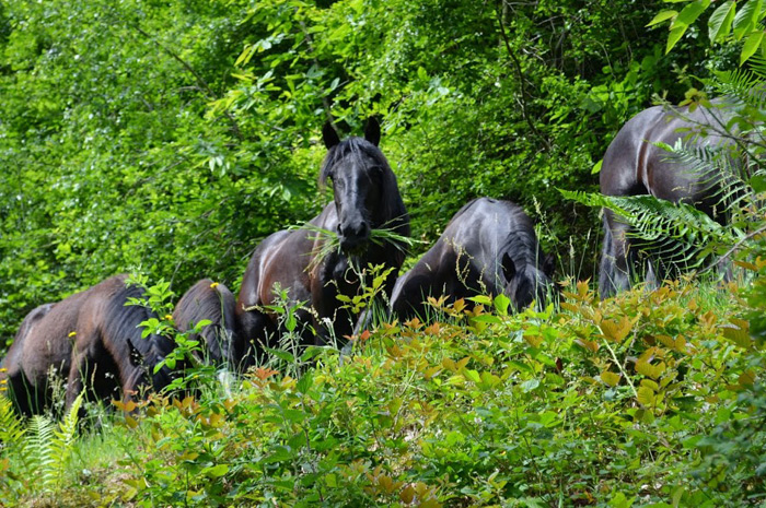 Transhumance avec les chevaux de Mérens en vallée de Bethmale