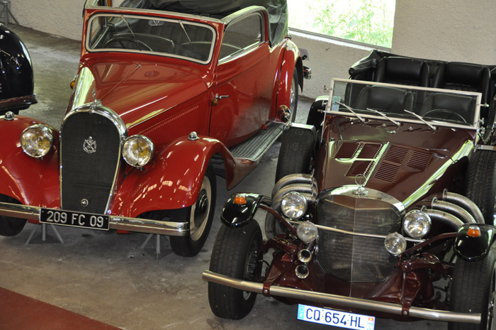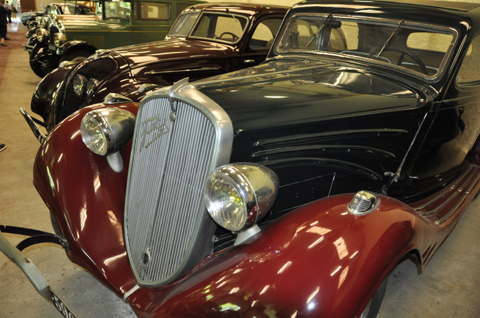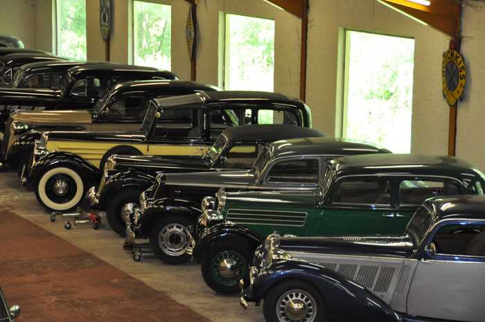 Cette collection de voitures anciennes se lit comme on feuillette un livre d’histoire des années 20 aux années 60, de la tôle pliée à la tôle galbée, des voitures populaires produites à la chaine des années 1930 aux voitures de luxe des années 50, les formes d’arrondissent, la voiture devient un véritable objet de luxe, se perfectionne et atteint les sommets du raffinement.