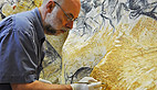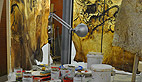 C’est dans son atelier du quartier de Borderouge, au nord de Toulouse que nous l’avons rencontré. Il travaille avec Bernard Toffoletti, spécialisé dans le décor de cinéma. Gilles donne les derniers coups de pinceau à de grands panneaux en résine époxy reproduisant dans la moindre aspérité les détails des parois de la grotte de Chauvet, rendue célèbre pour les fresques réalisées par l’homo sapiens il y a près de 36 000 ans.