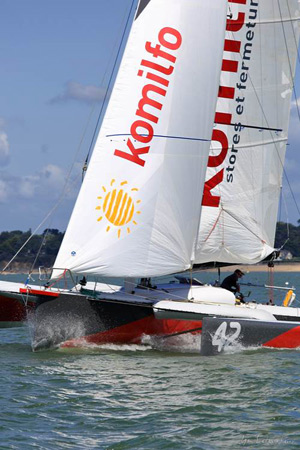 Le jeune skipper nantais est engagé sur «Komilfo», un le trimaran de 42 pieds engagé dans la classe «Rhum». Ce sera l’occasion pour les établissements ALUMI' 9 adhérents du réseau Komilfo, d’encourager un coureur particulièrement prometteur. En effet c’est dès l’âge de4 ans que Julien fait ses premières gammes aux côtés de son père en Optimist puis en Mini.