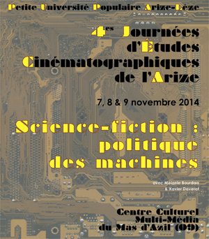 La soirée du vendredi 7 novembre marquera le départ des 4èmes Journées d'Études Cinématographiques de l'Arize organisées par la PUPAL. Cette année, la thémathique choisie est celle de la «Science-fiction: politique des machines».