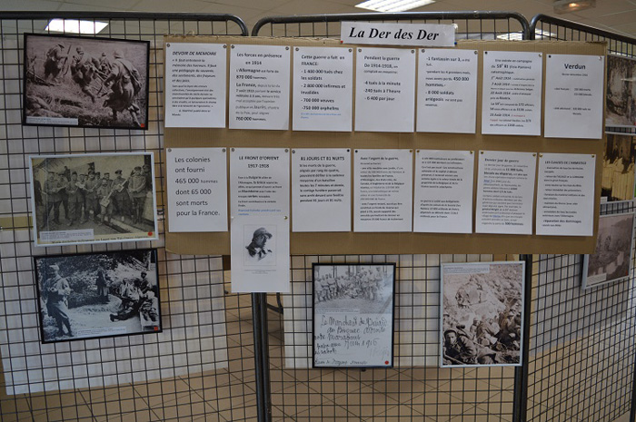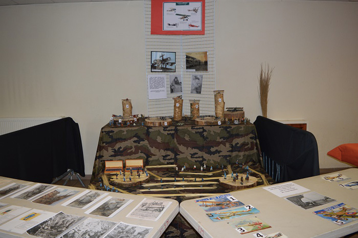 Le Dr Claude Monastié a prêté ses maquettes pour l'occasion, les anciens combattants leur drap mortuaire et leurs drapeaux. Dans un coin de la salle Mermoz, zoom sur le travail documentaire, les maquettes ou les fables des CM1 et CM2. Monsieur Doumerc, commissaire départemental à la commémoration s'est lui aussi investit pour cette célébration et a fourni photos, vêtements, ou objets.