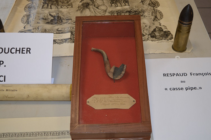 De nombreux privés ont répondu à l'appel lancé voici plusieurs mois par la commission du patrimoine. Cette dernière a récolté nombre d'objets précieux, comme la fameuse pipe du soldat François Respaud, pipe cassée par une balle allemande le 23 mai 1915 dans l'Oise.