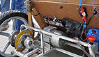 Il y a trois ans nous sommes partis avec un châssis acier, c’était un peu lourd, l’an passé quand nous roulions à la graisse de porc c’était un châssis en aluminium. Cette année nous avons opté pour le bambou, l’ensemble des pièces en matériaux composites sont en fibre de lin, nous restons ainsi dans le recyclable.
