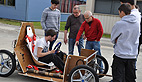 Après avoir mis au point il y a deux ans un moteur qui fonctionnait à la graisse de canard, puis l’an passé un prototype qui roulait à la graisse de porc, cette année les lycéens se sont orientés vers un concept beaucoup plus écologique réalisé en bambous et plaques de jute, alimenté par un moteur électrique de leur invention.