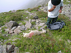 Sur plusieurs centaines de mètres dans les couloirs d’éboulis sur une pente escarpée, les carcasses enchevêtrées de plusieurs dizaines de brebis en partie dévorées par les vautours, dans une odeur pestilentielle… dans un paysage de montagne à couper le souffle.