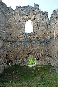 De ce qui fut la demeure des barons de Miglos, ne subsistent que les ruines du donjon carré, une petite salle à l’Est, une autre salle pourvue d’une cheminée et une tour carrée à l’ouest, surmontée d’une pièce au plafond voûté.