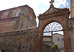Deuxième halte devant le portail de Notre Dame du Camp, autrefois «Notre Dame des Champs» car bâtie hors les murs de la cité. Au XIIe siècle, une petite église romane dont il ne reste que le portail largement remanié au XIXe siècle est construite ici. Le clocher mur et l’aspect défensif de l’église datent du XIVe, une période agitée pour Pamiers.