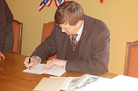 La matinée qui s’est terminée avec la remise officielle par la famille Faur du registre de la confrérie de Saint-Jacques à Mgr Marcel Perrier, évêque de Pamiers, Mirepoix, Couserans… et par une séance de dédicaces de l'auteur.
