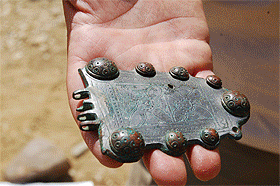Ainsi on découvre régulièrement des boucles de ceinture en bronze ou fer, des plaques-boucles  damasquinées ou en bronze étamé (datant du VIe et provenant d’ateliers aquitains et burgondes, sachant que les armées franques de cette époque étaient composées de wisigoths et de burgondes, rien d’étonnant), des armes (couteaux, poignards, scramasaxe, ceintures avec attaches, équipements militaire) des parures féminines, boucles de ceinture ou fibules»