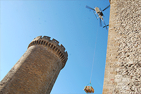Lundi matin, les fuxéens ont remarqué la noria incessante d’un hélicoptère au-dessus de leur tête, celui-ci hélitreuillait du matériel au château de Foix, au pied de la tour ronde.
