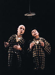 Deux personnages issus du burlesque préparent un numéro comique. Un accident se produit à l’issue duquel l’un des duettistes meurt.