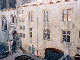 Pour éclairer l’escalier conduisant à une loge ouvrant sur la cathédrale, quatre ouvertures géminées ont été réalisées sur un modèle courant à l’époque. C’était l’oratoire privé de Philippe de Lévis, évêque de Mirepoix de 1497 à 1537 mais surtout grand amateur d’art, à qui l’on doit l’achèvement de la cathédrale –notamment le clocher à flèche de forme pyramidale et le magnifique portail- et qui a fait exécuter des antiphonaires ainsi que des psautiers remarquables pour sa cathédrale.