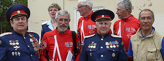 Ensuite en délégation nous serons reçus au palais du gouvernement régional où des militaires cosaques «tapissés» de médailles nous saluent, nous simples cyclos, comme des «héros»