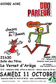 Samedi 11 octobre au Vernet d�Ariège: Soirée ACME