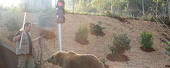Sur le tournage du film «No pasaran»ï¿½ avant de traverser la route, l�oursonne «Julia» s�est arrêtée au feu rouge�